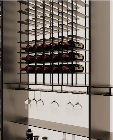 The open aluminum plate wine bottle rack is made of a round tube with a wall thickness of 3.8mm and a diameter of 11mm, which is sturdy and durable. It is paired with a solid aluminum plate of 5mm * 67mm * 300mm, and has a surface oxidation treatment, resulting in a delicate and exquisite appearance and feel. Free splicing controllable customization specifications, and customizable colors. Installation: Net depth between units D ≥ 300mm, H ≤3000mm.
