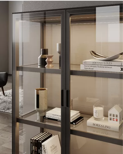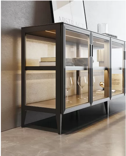 pursuit of high beauty for contemporary young people,but also showcases the product’s expressive power. It is equipped with two luminescent layers and two wine rack layers, allowing the wine glass and wine to be stored at will. Combined with the lighting inside the cabinet, the entire wine cabinet becomes luxurious, making the entire space rich and interesting. This glass wine cabinet,you deserve it !