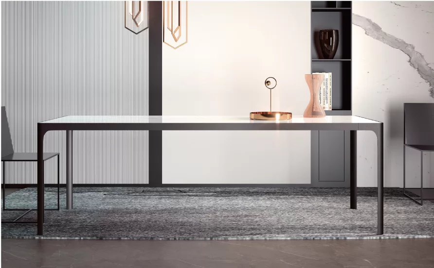 This Italian style rock board minimalist table has simple and smooth lines. The rock board countertop is paired with painted corners, and different elements collide to create a new aesthetic. The white rock board countertop gives the restaurant more dreamy colors, allowing you to enjoy it whether it’s dining with family or handcrafting or painting with children.